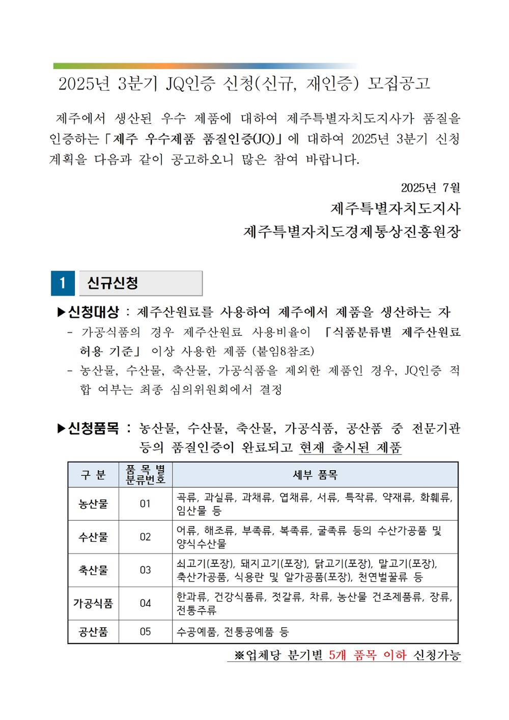 제주우수제품품질인증 신청하세요!